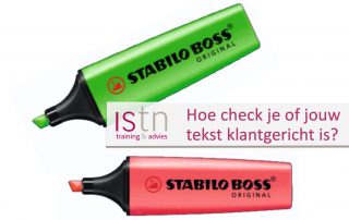 Of je nu een brief of een tekst voor je nieuwe website schrijft, je wilt graag dat deze klantgericht is. Een eenvoudige check kun je met de arceerfunctie van Word of als de tekst op papier staat, met echte arceerstiften uitvoeren. Een voorbeeldtekst die ik van een website gekopieerd heb: “Onze glasservice is 24 uur per dag, 7 dagen per week beschikbaar voor reparatie van een kapotte ruit. Wij kennen de regio als geen ander, leveren de beste service tegen een zeer scherpe prijs.” In deze tekst lees ik veel zaken die ik als klant aantrekkelijk vind, maar de tekst is niet klantgericht maar organisatiegericht. Dat kan je eenvoudig zichtbaar maken door de tekst in Word te plakken en [...]